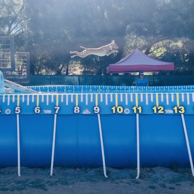 Crush's initial fascination with jumping into the pool evolved into a full-blown passion for dock diving, where she found her true calling. What started as a playful leap transformed into a competitive pursuit, propelling her to extraordinary heights in the sport. With determination and skill, Crush shattered records with a jaw-dropping dive of over 20 feet in our pool, showcasing her natural talent and boundless enthusiasm. Her dedication and prowess didn't go unnoticed, earning her both junior and master dock diving titles, solidifying her status as a standout athlete in the dock diving community. Through countless hours of training and sheer love for the water, Crush has emerged as a shining star, embodying the spirit of athleticism and adventure.