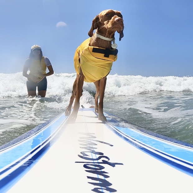 With a boundless love for the beach, Crush's passion for surfing knows no bounds. In 2022, Crush made waves of her own when he triumphed in the Surf Dog Surf-a-Thon contest in Del Mar, clinching the 1st place win in the small dog category. With her sleek coat glistening in the sun and an unmatched enthusiasm for catching waves, Crush embodies the perfect blend of athleticism and spirit that defines the Vizsla breed. Whether she's gliding across the waves or digging in the sand, Crush's zest for life is as contagious as the salty sea breeze.